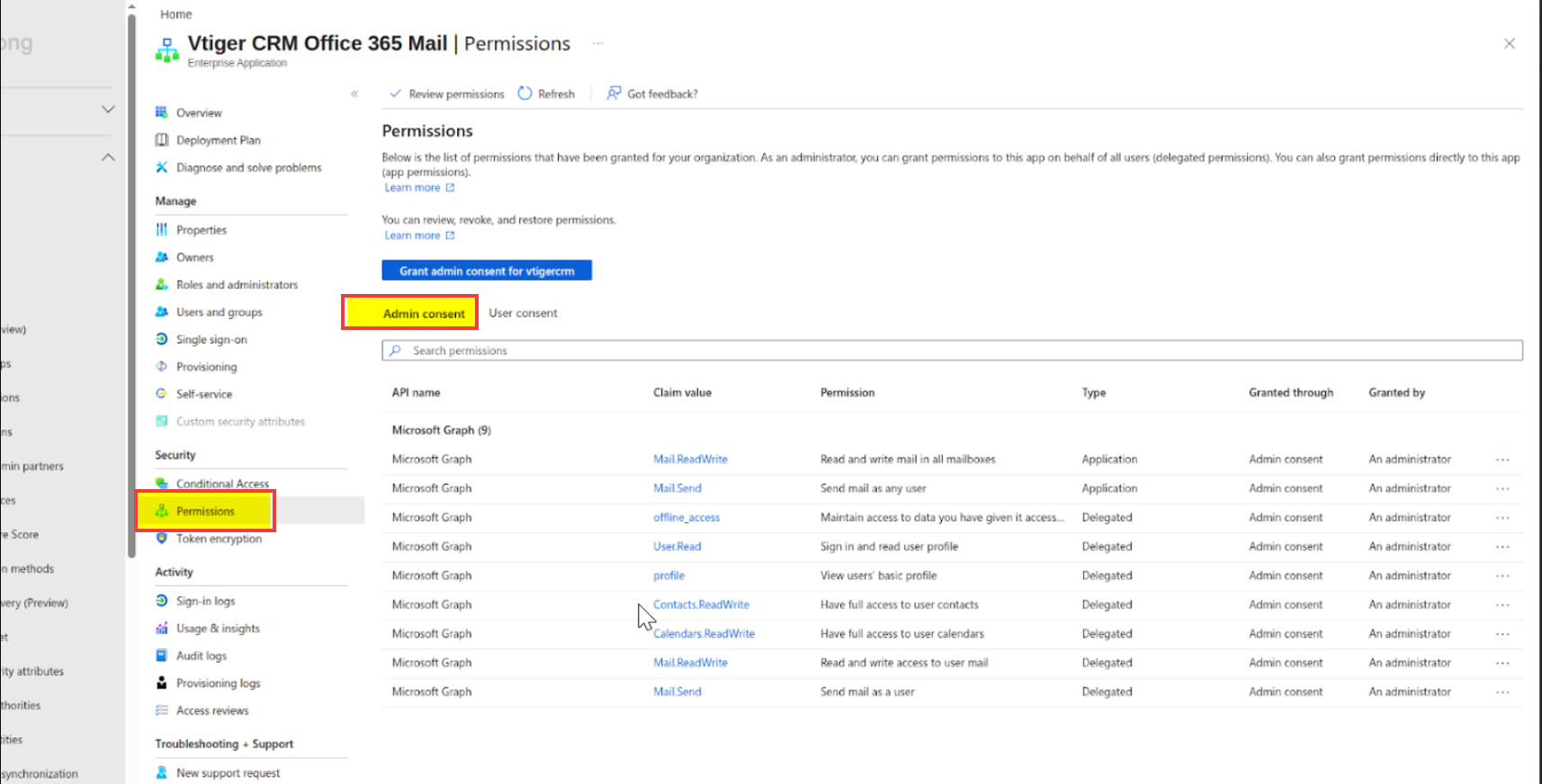 Note: Admins can verify the granted permissions in the Azure Portal under Enterprise Applications > Permissions > Admin Consent.