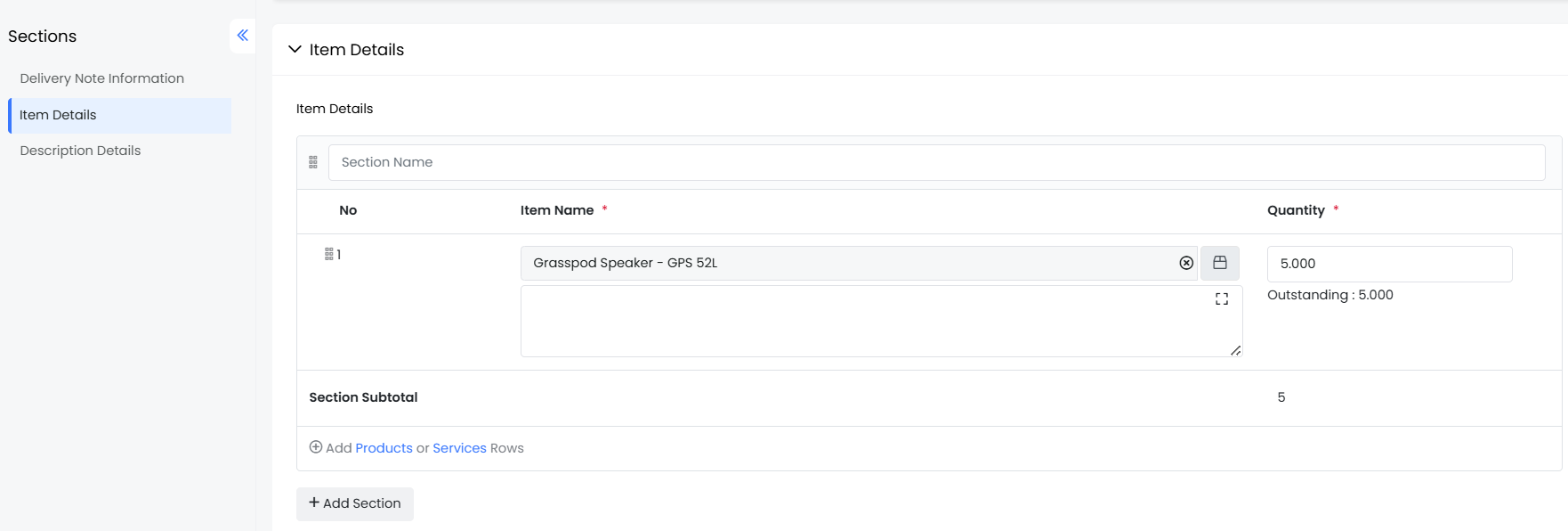 - Click the +Add Delivery Note button.