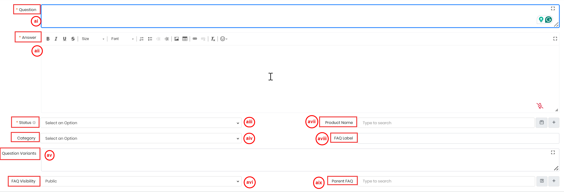 The FAQ editor allows you to: