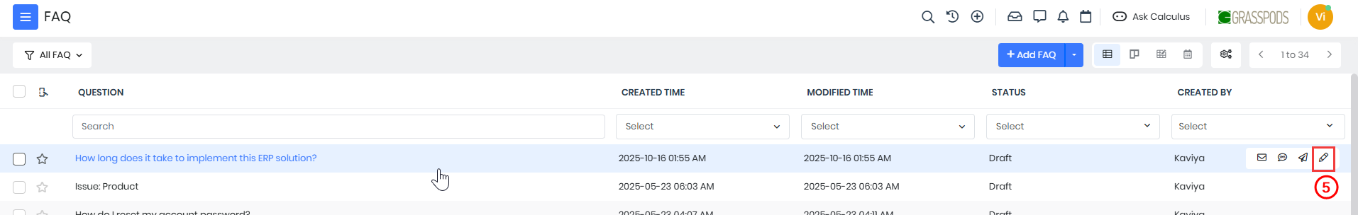 Follow these steps to edit an FAQ from the List View: