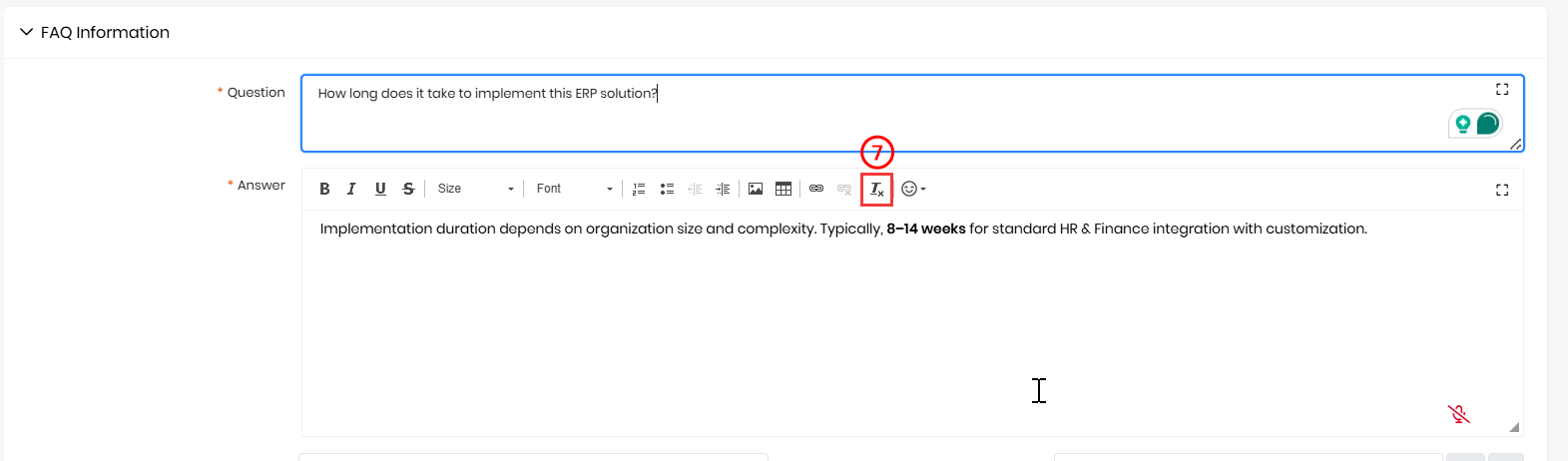Note: You can add mandatory details first and add the other details to the FAQ later.
