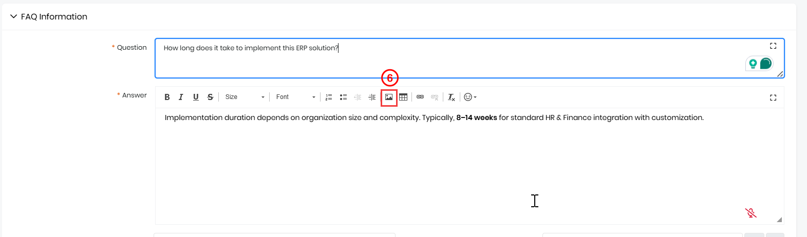 Follow these steps to add a screenshot to an FAQ: