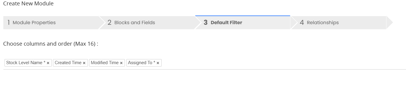 In this step, you must choose the columns that will appear by default in the List View of the module.