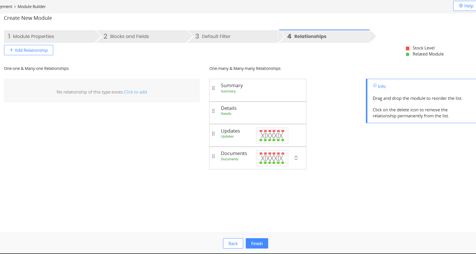 We have detailed information on the need to create relationships between modules, different types of relationships, and the procedure to follow. To learn about it, click here.