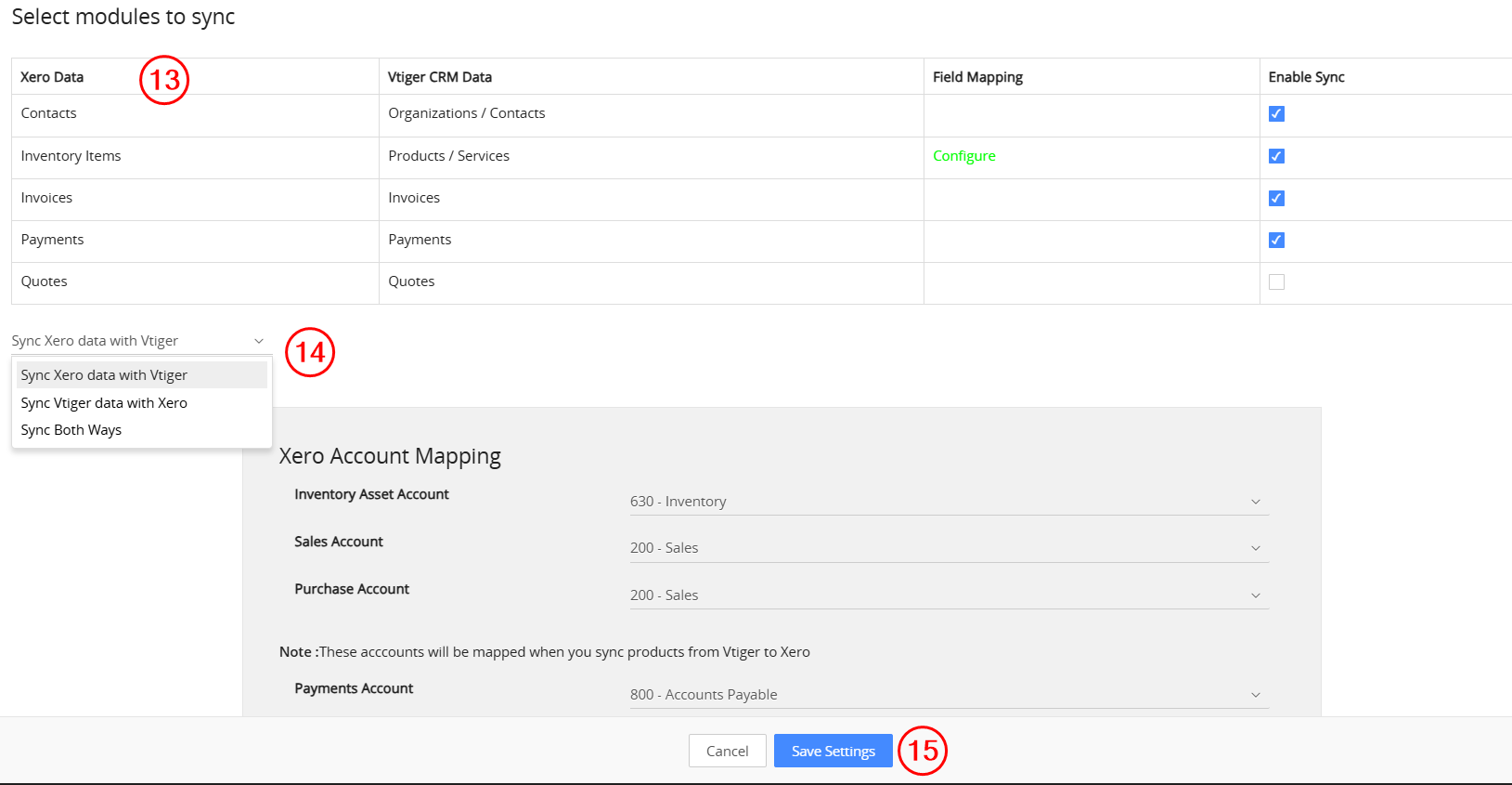 Xero to Vtiger: - Only Sales Invoices are synced from Xero to Vtiger.