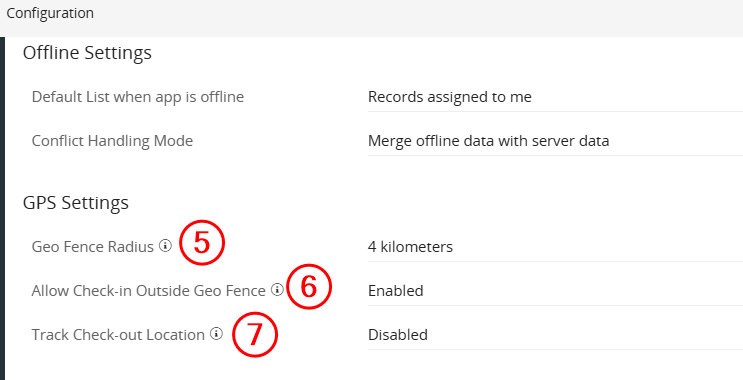 | GPS Settings | Configuration options available to Admin users to define the geofence radius for onsite events. |