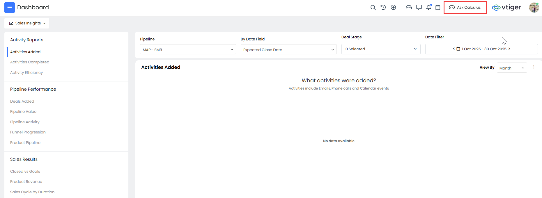 Vtiger's Calculus AI is a feature that leverages the power of artificial intelligence to optimize workflows and elevate the performance of sales, support, and coaching teams. It automatically takes inputs from the CRM to provide you with the best advice and solutions.