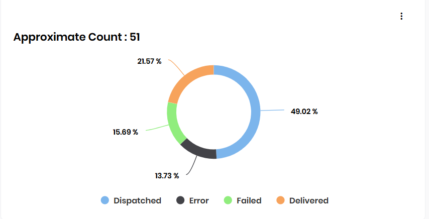 You can view campaign statistics in a pie chart showing the delivery, dispatch, error, and failure rates for the SMS campaign.