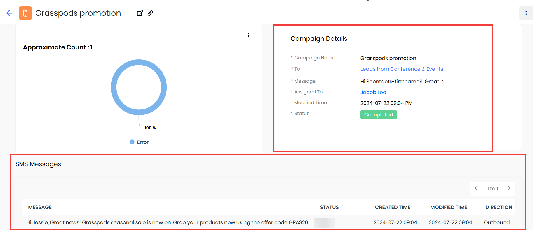 - SMS campaign record details
