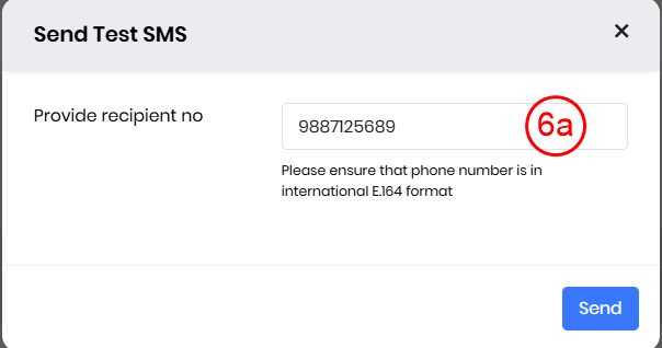- Upon clicking Test, a pop-up appears prompting you to enter the recipient’s number to test the delivery of the message campaign.