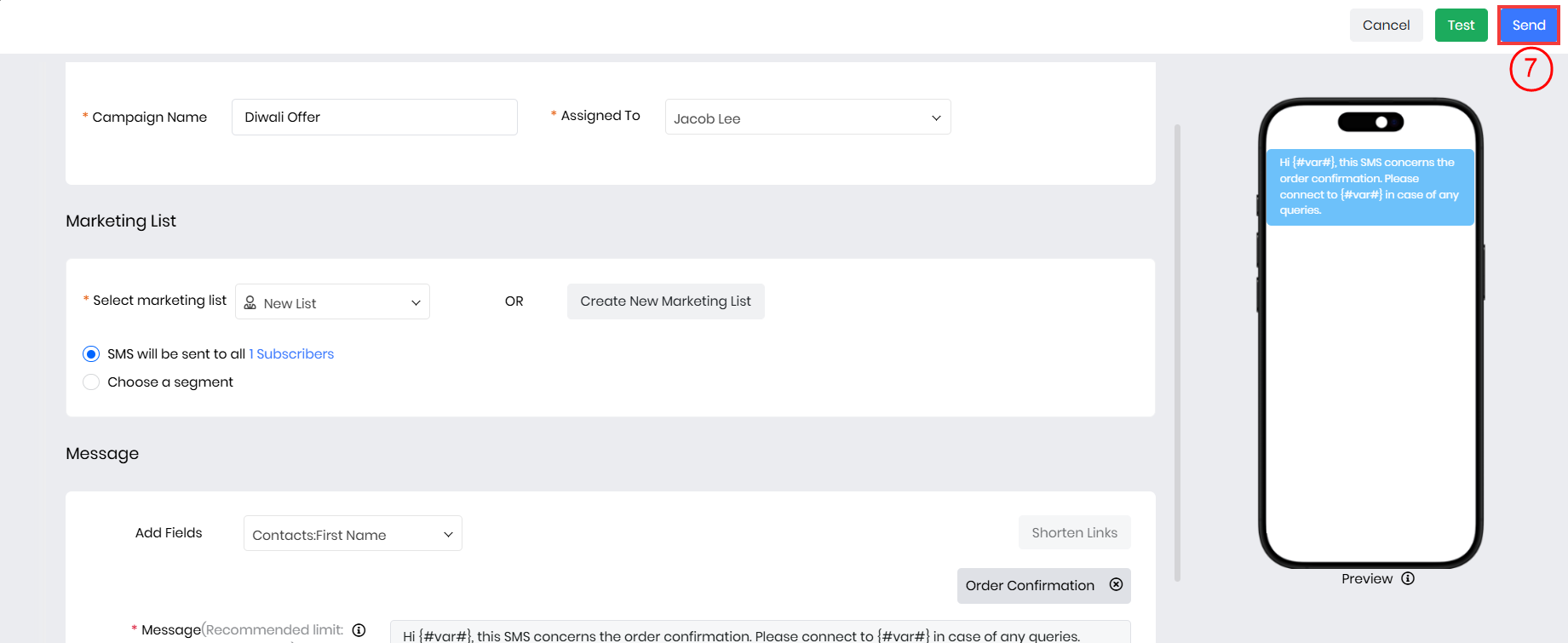 - Contact and List Integration: Send SMS campaigns using CRM contacts, leads, or marketing lists.