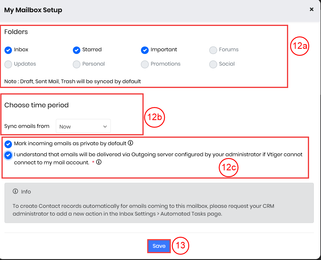 In Vtiger CRM, you can configure and set up the following in Mailbox Settings.