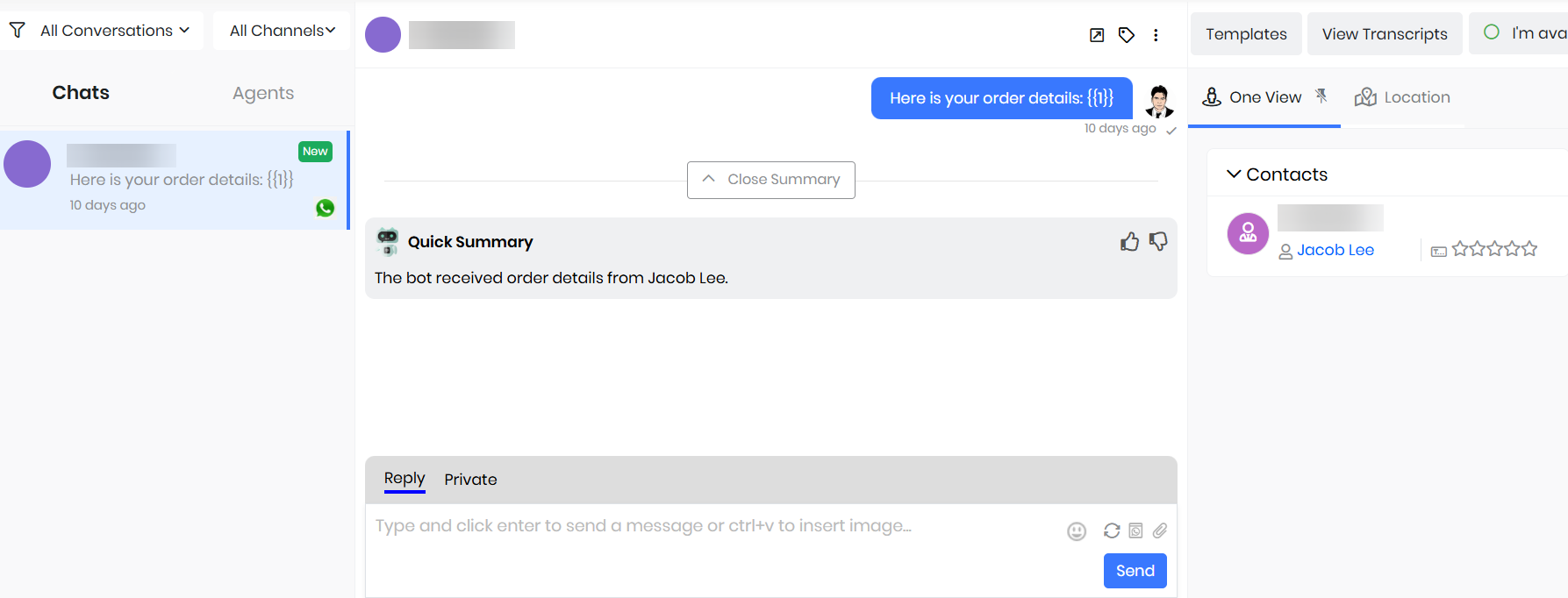 - WhatsApp: Displays messages sent through the WhatsApp channel.