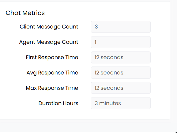 - Chat Metrics: These metrics are automatically calculated by the system, which summarizes the entire conversation. It displays the details listed below: