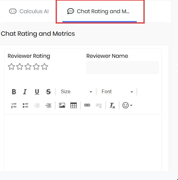 - Reviewer Rating and Notes: A reviewer can also rate the conversation and write some notes to the agent after going through the chat transcript and the chat metrics. This will be very helpful to the agent to avoid certain errors in the future.