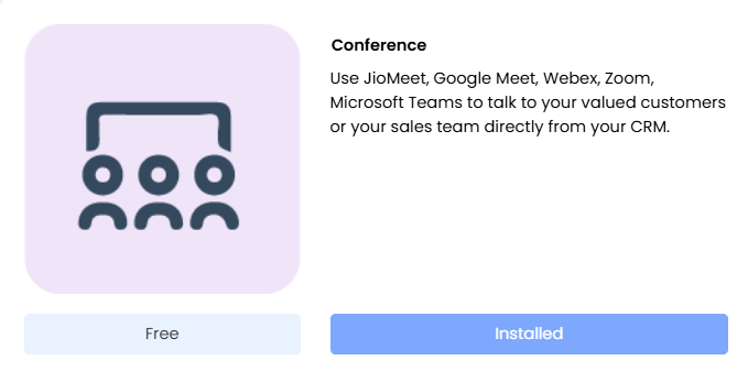 To use Vmeet, you need to install the Conference Add-on from the Add-ons page. It is a built-in meeting feature that lets you schedule and manage meetings directly from various CRM modules, enhancing collaboration and productivity.