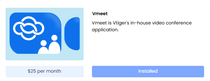 Note: Vmeet is available as a paid add-on for $25/month across all Vtiger editions.