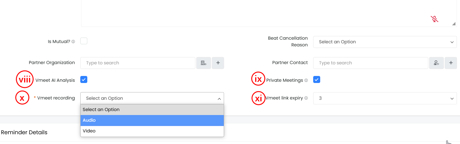 - Vmeet recording: Select the type of recording - Audio or Video.