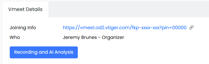 Note: The meeting host is the CRM user assigned to the Vmeet event.