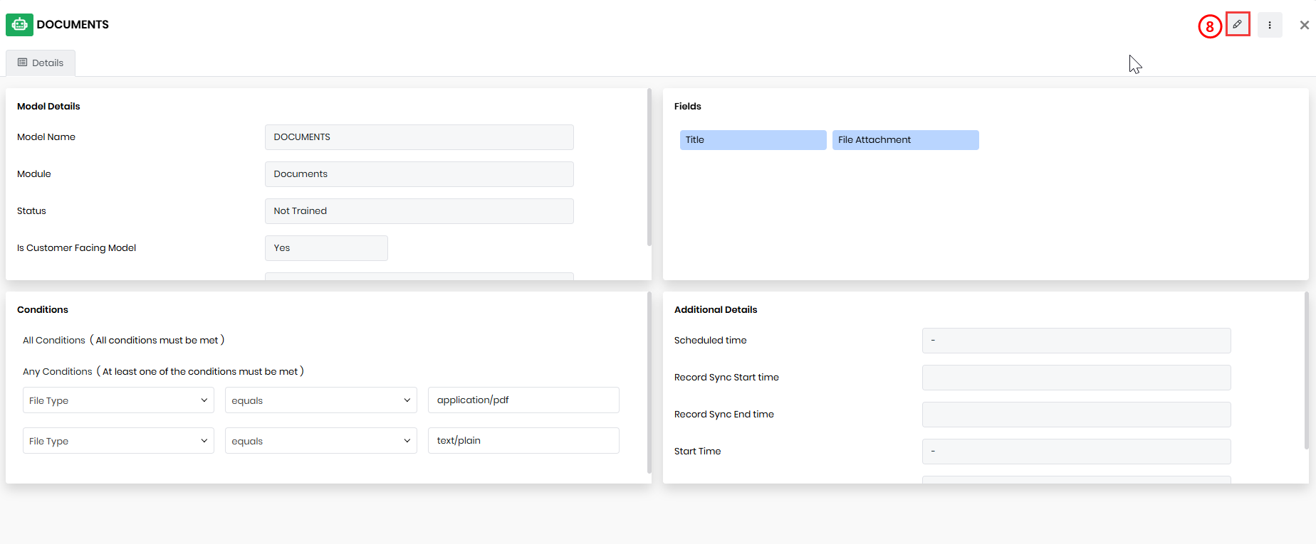 - Status – Indicates the training status of the model.