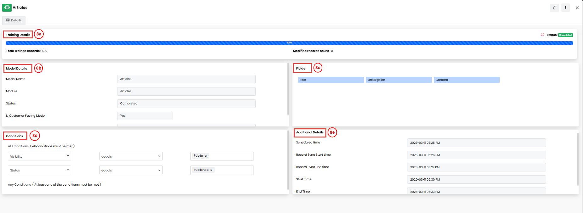 - Modified Records Count – Displays the number of records modified after training.