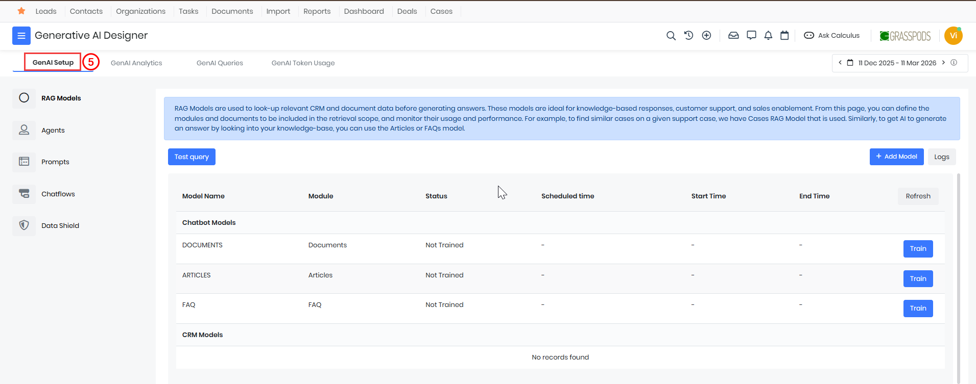 These components work together to enable Artificial Intelligence-powered responses and automation in Vtiger CRM.RAG Models